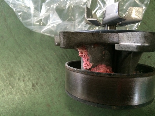 走行距離が約10万Km弱になると下の写真の様に液漏れしてきます。
